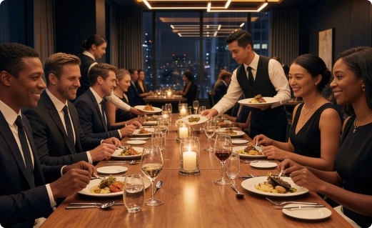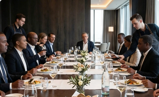 Alta gastronomia em porções refinadas, ideal para conexões que pedem fluidez e estilo.