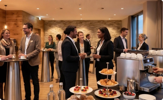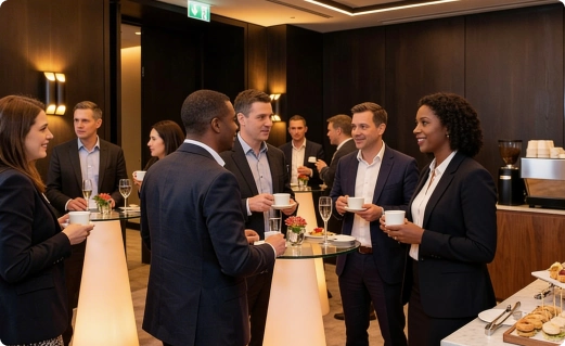 O cenário ideal para conectar pessoas. Unimos conforto e sofisticação para que sua marca receba convidados com excelência.