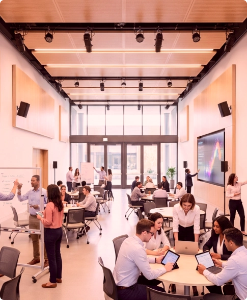 O espaço modular definitivo para reuniões, workshops e ativações. Ambientação sob medida, tecnologia imersiva e a segurança de uma gestão completa.